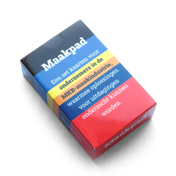 Maakpad is een eenvoudige, maar uitgekiende set kaarten, gemaakt om een gesprek over je uitdagingen te helpen focussen. Je schept er overzicht mee, doet nieuwe ideeën op en puzzelt ondertussen een stappenplan richting een einddoel in elkaar.